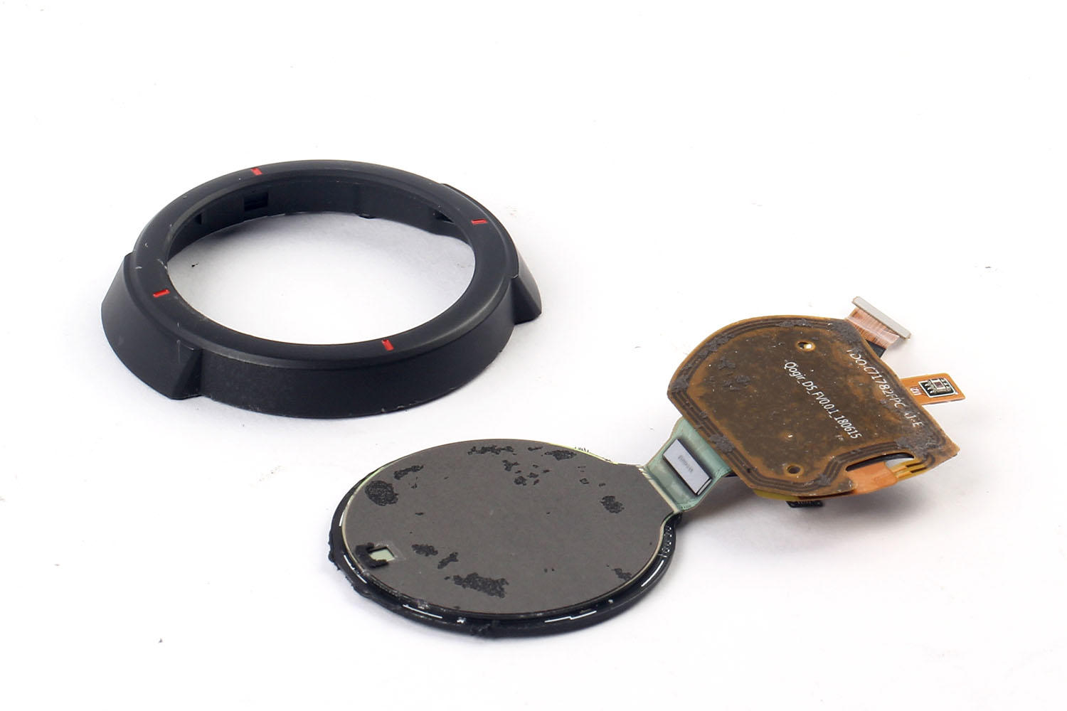 后盖上的心率传感器盖与后壳之间通过泡棉胶去固定,听筒下方垫有用于防水的硅胶圈。