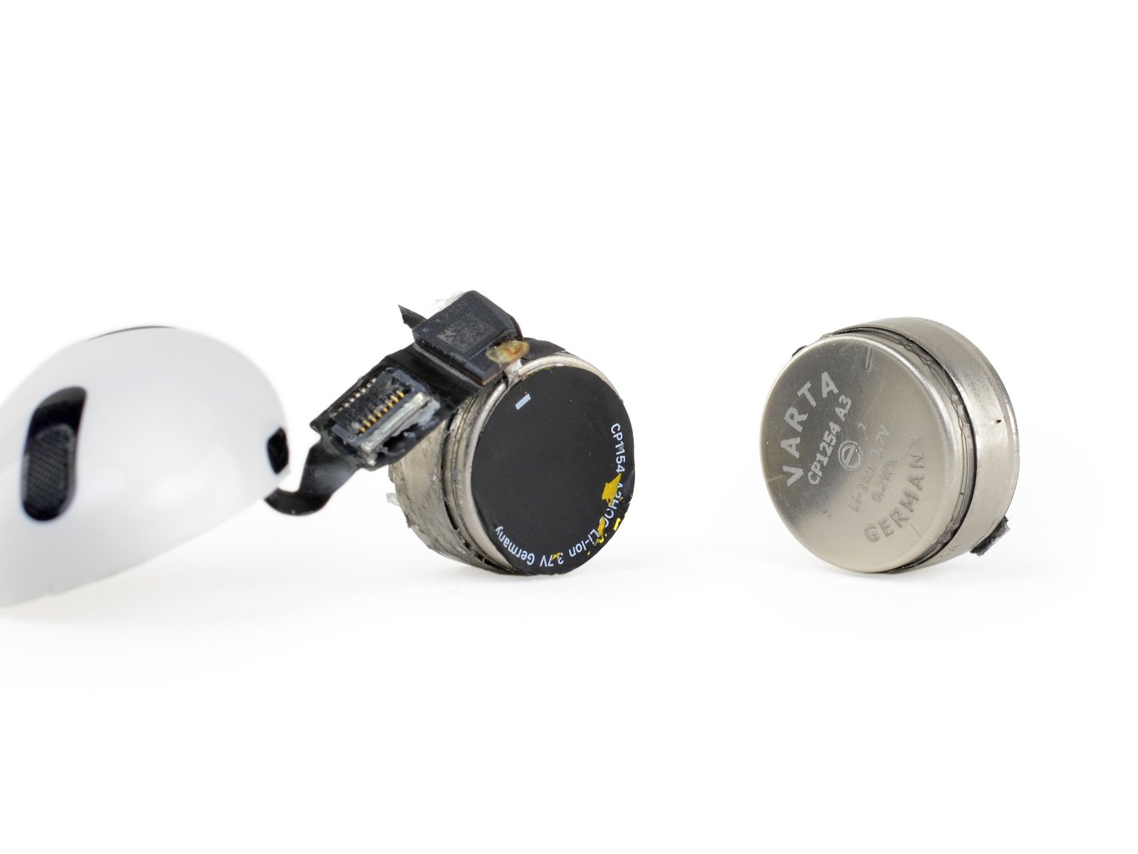 这些电池都是以3.7V电压运行的德国造锂离子纽扣电池,估计其容量约为168mWh。