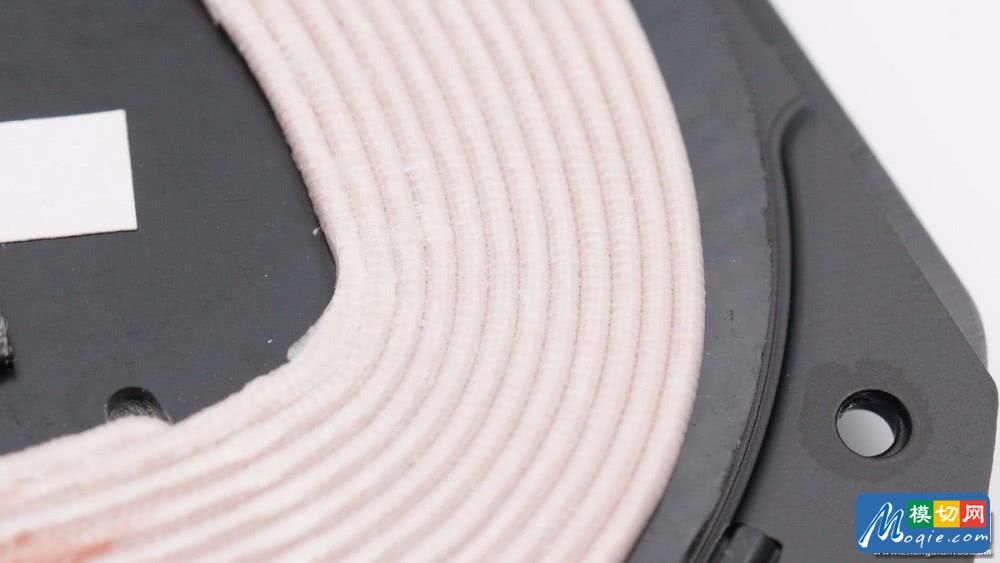 首先先来看看无线充电器部分,无线充电电路上焊接金属屏蔽罩,并且还贴有金属铜箔贴纸。