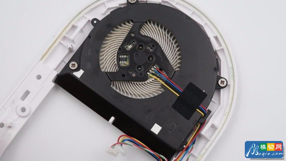 最后再来看看风扇设计做工,风扇壳使用螺丝进行固定,线芯粘贴胶带固定。