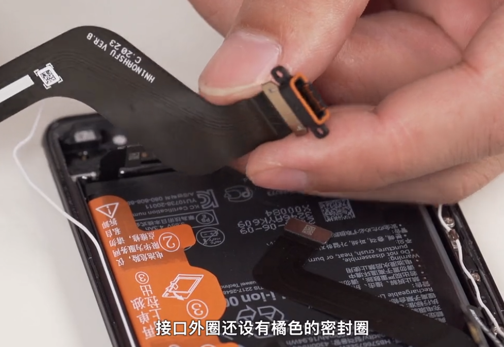 华为 Mate 40 Pro 的 USB-C 接口 (充电和耳机)与扬声器是集成在一根线上的,因为 USB-C 接口非常容易损坏,独立的 USB-C 接口模块以后更换起来非常方便。
