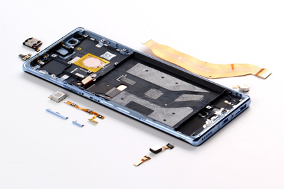 取下用胶固定在内支撑的按键软板、听筒、指纹识别软板、振动器等部件。