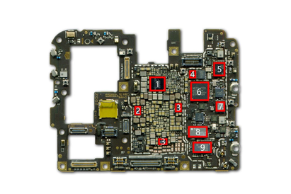 取下主板盖上的NFC线圈、闪光灯软板和麦克风板。在主板盖上贴有液冷管对应NFC线圈和主板上电源区域。