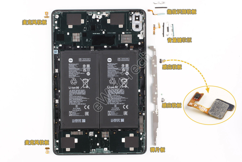 综上所述小米Pad5的定位非常清晰,一款用于影音娱乐的平板电脑。所以提升了屏幕、扬声器的品质,处理器只使用了骁龙860处理器。拆解中小米Pad内部结构简单明了,拆解较为简单,会便于后期维修。在拆解分析的过程中也涌现了不少国产厂商。