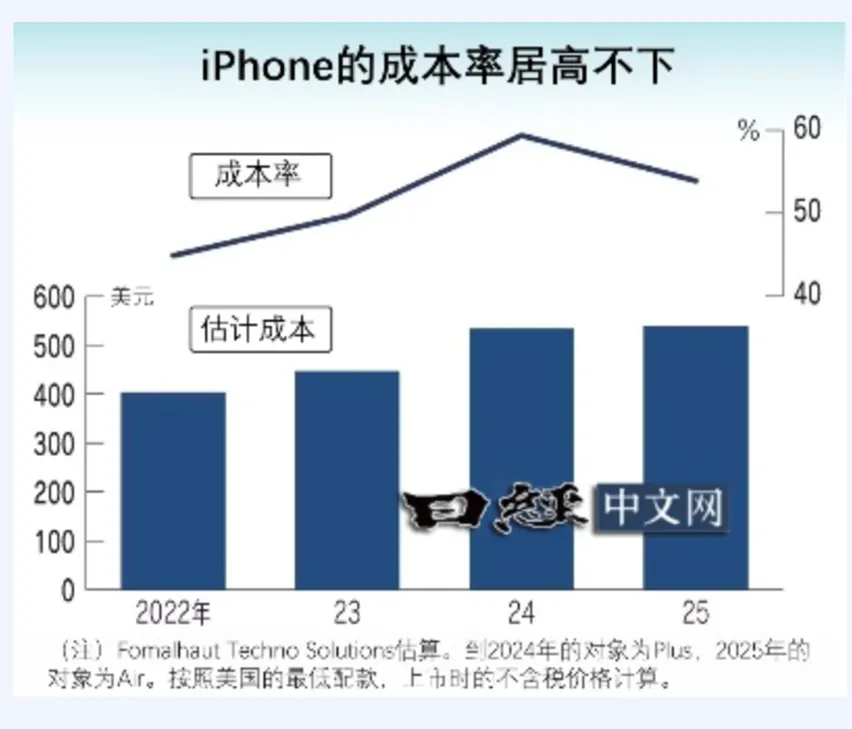 即使小型化并削减功能,成本仍然高企。据Fomalhaut估算,Air最低配版本256GB产品的估计成本约为539美元。成本率为54%,与16Plus的256GB产品(55%)几乎持平。